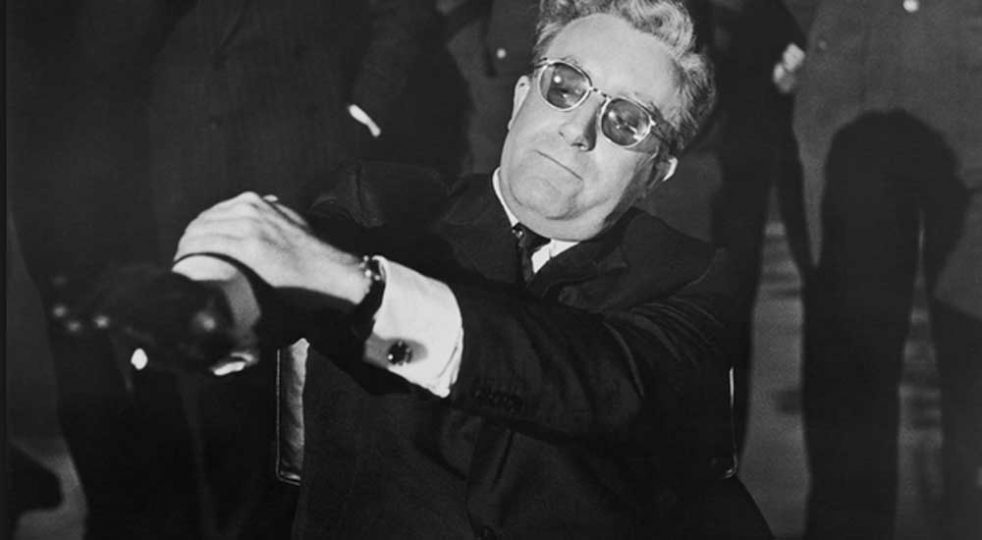 Interpretato da: Peter Sellers in ll dottor Stranamore – Ovvero: come ho imparato a non preoccuparmi e ad amare la bomba (1964) di Stanley Kubrick.